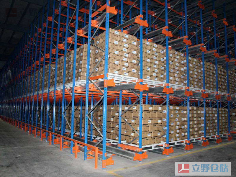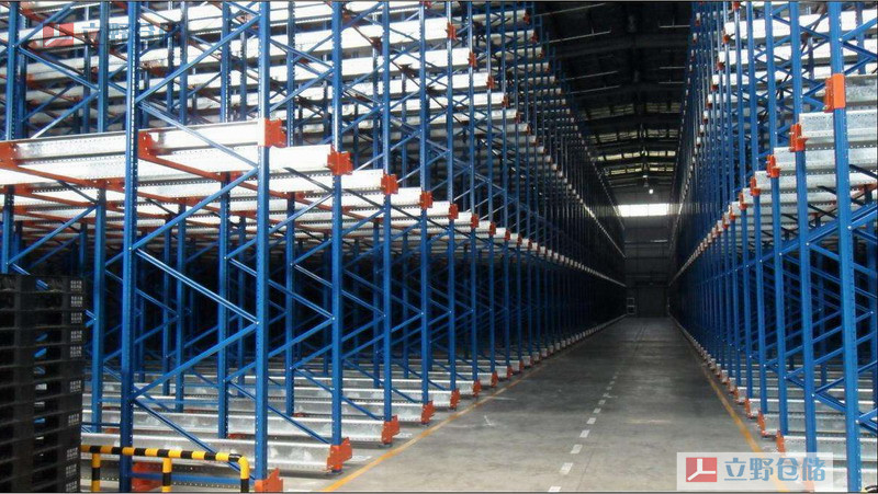穿梭式貨架,主要由貫通式貨架衍變而來,和穿梭車配合使用,通過穿梭車進入貫通貨架內(nèi)部存取貨物,和貫通貨架一樣空間利用率極高,可使用到倉庫總體積的80%。